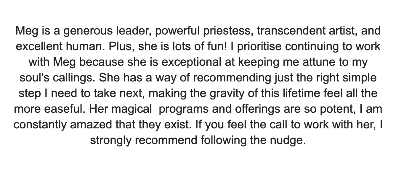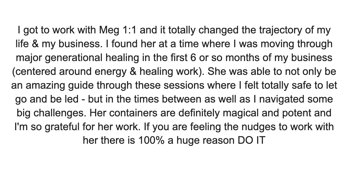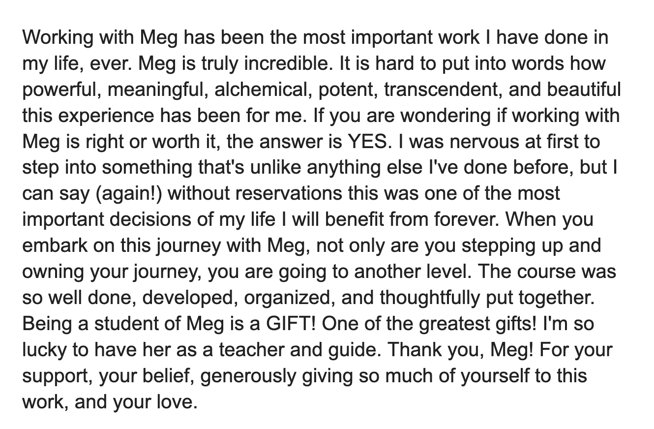 This work only works if you work it! So definitely take your time and give yourself space to process all that will come up, but commit to yourself and to engaging with this medicine. That's it!